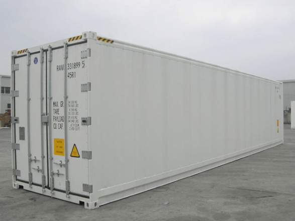 Conteneurs Reefer (10, 20 et 40 pieds) pour stockage à température contrôlée.