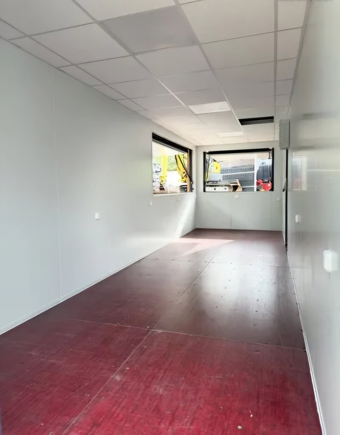 Structure robuste en acier galvanisé avec isolation thermique haute densité. Ce module de 6 mètres offre un espace de travail spacieux et lumineux, livré prêt à l'emploi avec installation électrique complète et menuiseries PVC.