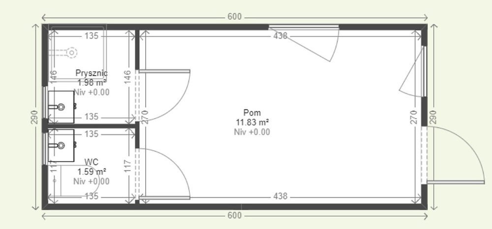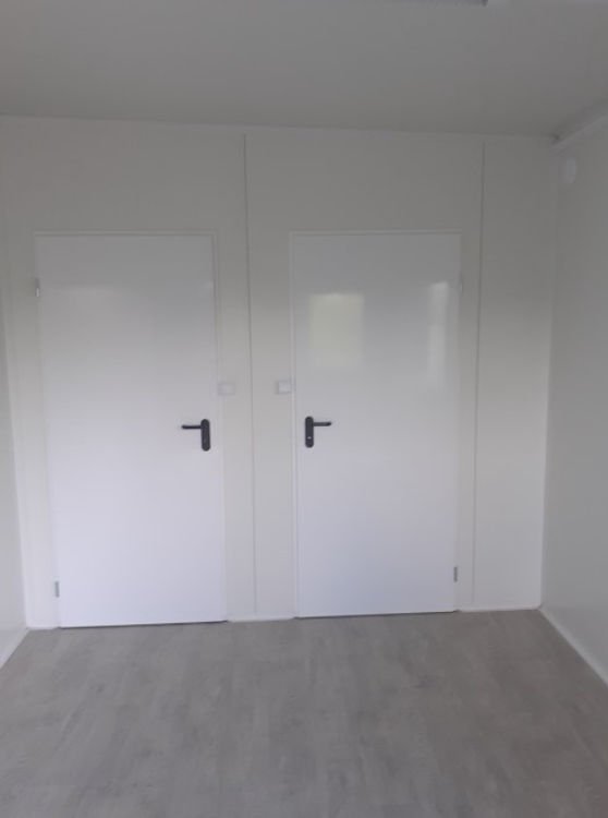 Deux entrées séparées pour une intimité totale entre l'espace WC et Douche. Structure isolée idéale pour les campings ou bases de vie.