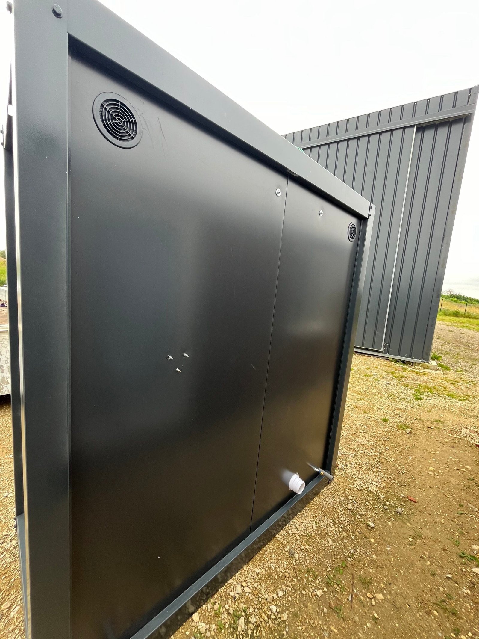Alliez l'esthétique à la fonctionnalité. Ce modèle en Gris Anthracite offre une finition haut de gamme pour vos chantiers ou événements. Ses entrées séparées permettent une gestion optimale des flux.