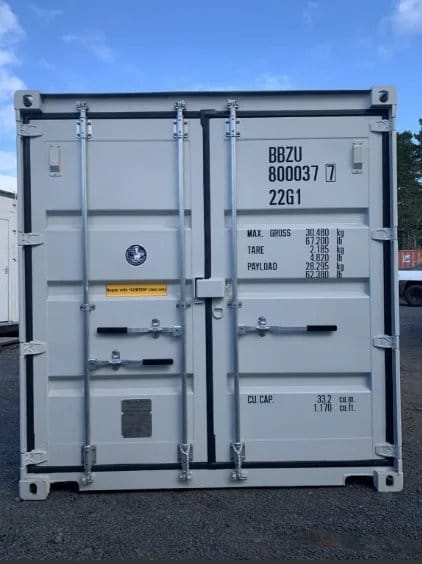 Ce conteneur gris clair offre une esthétique sobre et professionnelle, idéale pour un stockage visible en entreprise ou chez un particulier. Structure en acier Corten parfaitement conservée. Plancher sec et portes souples à l'ouverture.